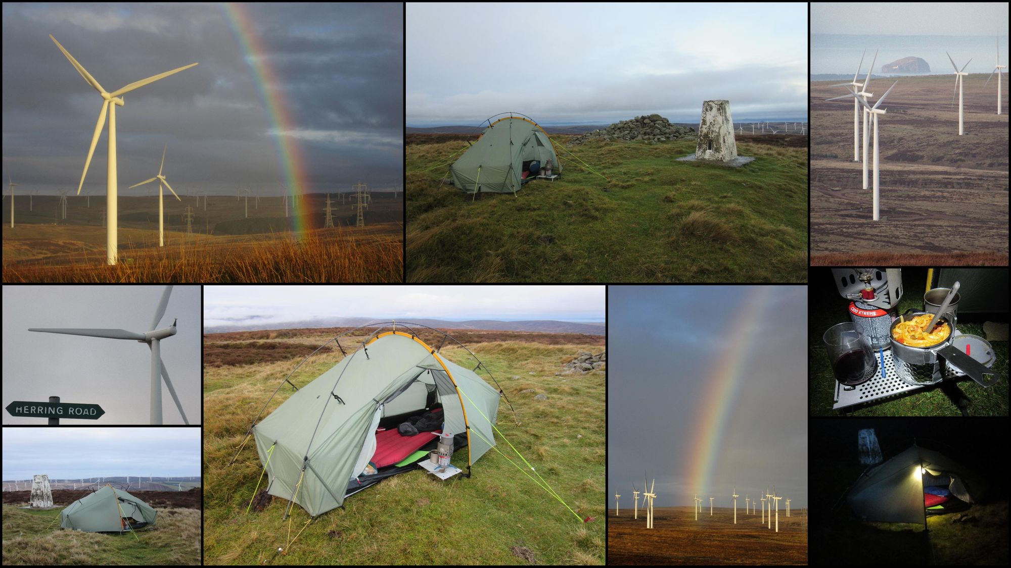 Out with the girls again, this time for a Graham summit camp (pretty easily reached by some meandering windfarm and moorland tracks, except for the last climb to the summit).