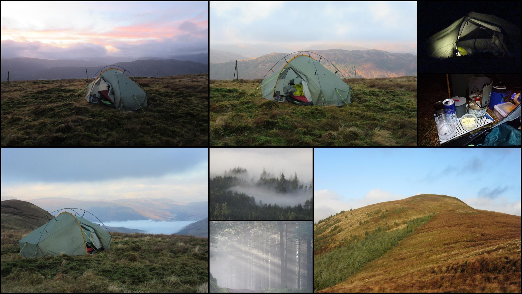 Another quick one-nighter snatched in a brief spell of lighter winds between storms. Only about 90 minutes from the road to the top (645m). Very wet underfoot, but fortunately the summit was acceptably dry. Some fog in the glens in the morning, but far from full-on inversion conditions. Quite a lot of the higher things surrounding it (e.g Ben Ledi) are on my summit camping hit-list, but this solitary Graham was still on my bagging to-do list so it had priority.
