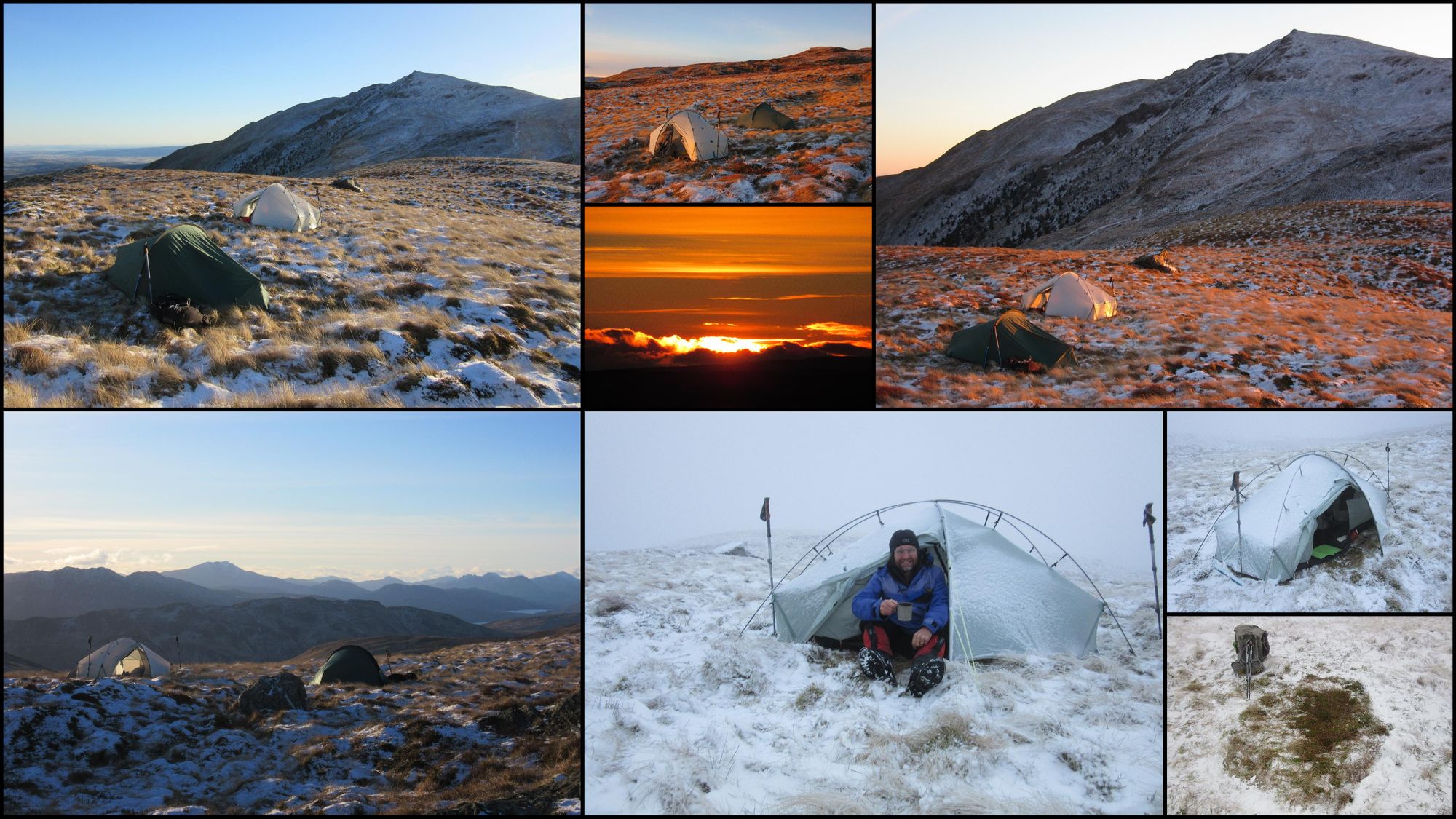 First one of 2026, in a brief spell of light winds and sunshine at least on the first day; clag and some fresh snow blew in overnight. -5C seen on a thermometer outside the tent. Icy-in-places paths up and down but never quite bad enough to put the spikes on, although an ice axe was needed to hack a hole in Lochan nan Corp to draw some water. With Ian P.